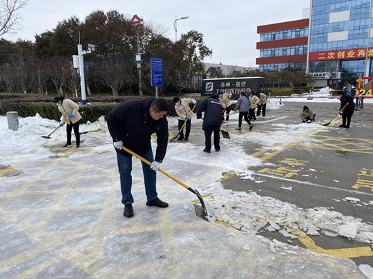 一場大雪,把蘇宿園區(qū)裝點得銀裝素裹,卻給群眾出行帶來了很大不便。為保證居民安全出行,建發(fā)公司全體職工參與園區(qū)及各物業(yè)項目道路掃雪除冰工作,奏響全員鏟冰除雪“進行曲”。