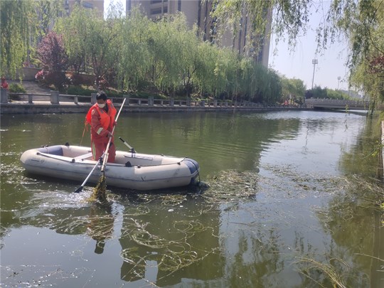 公司根據(jù)各河道水草生長情況,采用“先割后清”、“分段切割,集中打撈”的方法進行推進式作業(yè),每天組織近30名人員分切割、打撈和清運三個小組集中開展水清打撈清運作業(yè),截止目前,園區(qū)利民河、富民河、十支河、民便河水草已全面清理結(jié)束,蔡莊大溝水計4月底前全面清撈到位,重現(xiàn)園區(qū)“碧波潺潺、河暢水美”的河道景觀。