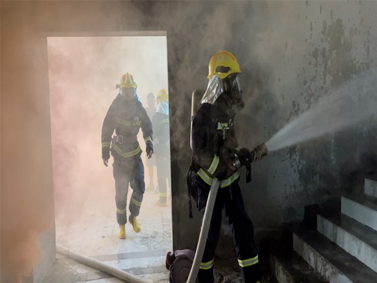 下午15點50分,科技物流園內部突然起火,現場濃煙滾滾,相關工作人員立即采取自救措施,通知義務消防員有序組織人員疏散,消防官兵到場后,立即迅速組織對被困人員實施救援,及時堵截火勢、控制火情,經過近30分鐘的滅火救援戰(zhàn)斗,大火被徹底撲滅,演練取得了圓滿成功。
