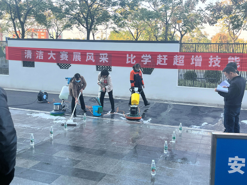 此次大賽分理論知識(shí)和操作技能兩部分。理論知識(shí)主要考核選手對(duì)專(zhuān)業(yè)理論知識(shí)的掌握程度;技能實(shí)操則從清潔機(jī)械操作、玻璃清潔等方面進(jìn)行現(xiàn)場(chǎng)考核。