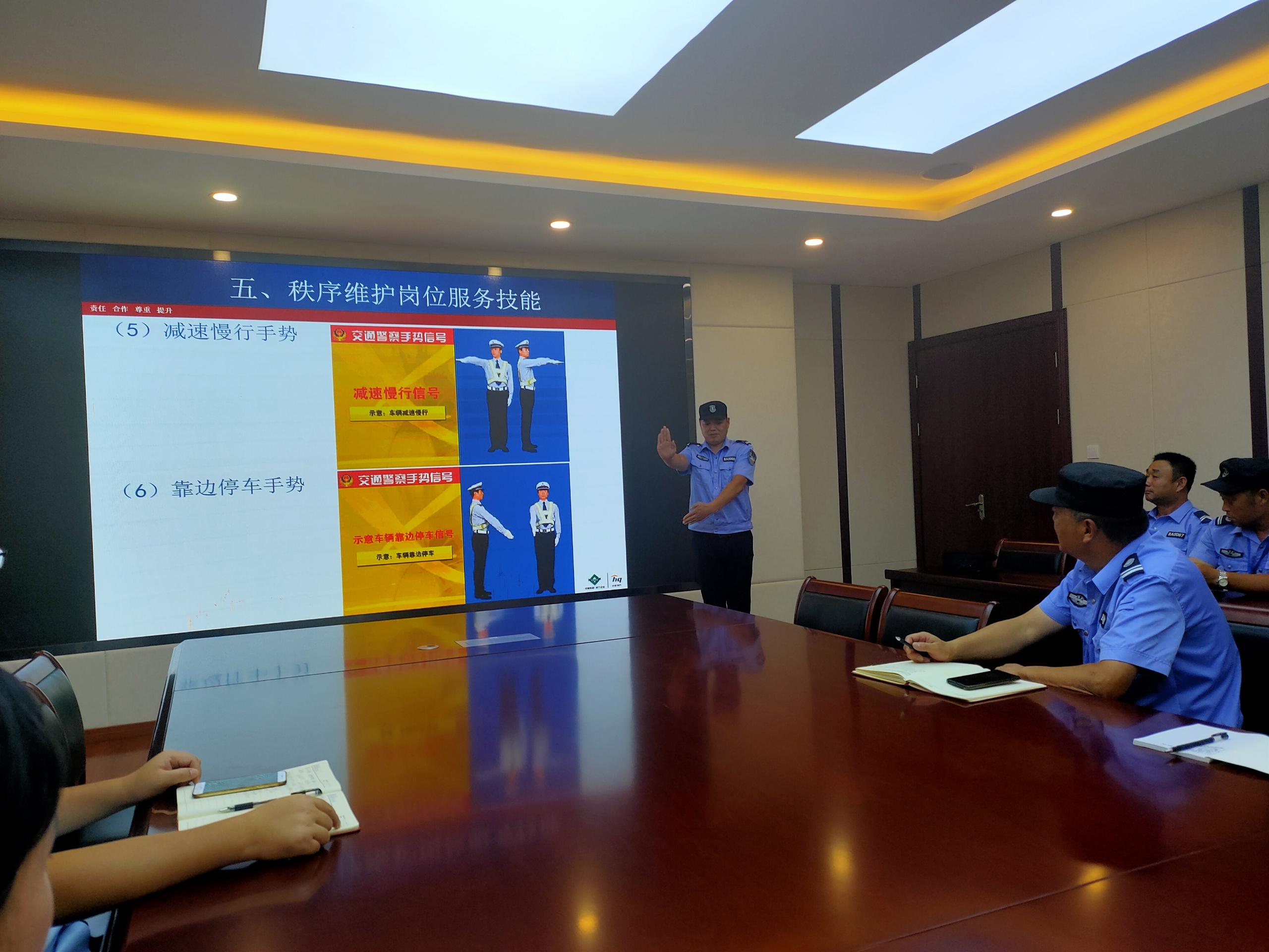 此次培訓主要講解了道路交通法律法規(guī)、交通標識標線、交通事故認定知識以及如何正確文明行車。根據(jù)保安人員崗位職能特點,結(jié)合校園周邊交通現(xiàn)狀及交通陋習等方面,教授安保人員如何做好一名校園交通安全宣傳員、引導學校學生安全上下學、應(yīng)急處理校園周邊交通事故等。 隨后介紹了常用的交通指揮手勢,講解指揮手勢的動作要領(lǐng)及含義。