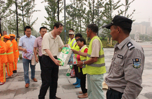 7月23日上午,園區(qū)黨工委委員、規(guī)劃建設(shè)局局長周原帶隊(duì)慰問了奮戰(zhàn)在一線的城市維護(hù)作業(yè)人員,給他們送上清涼、送上關(guān)愛。