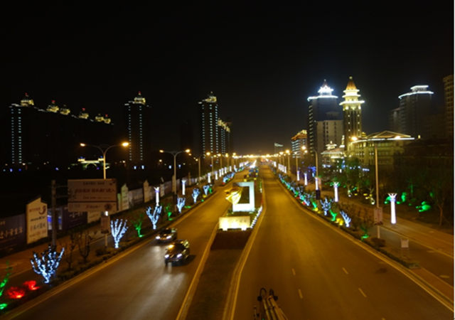 每到夜晚,安裝在建筑物房檐、屋頂、翹角、綠化、水面、景觀點(diǎn)等位置的燈光帶同時(shí)亮起,將青海湖西路的輪廓勾勒得鮮明清晰,道路、水面、公園、綠化等景觀也被一一點(diǎn)亮,更加絢麗多姿,托出繁華熱鬧的氛圍。